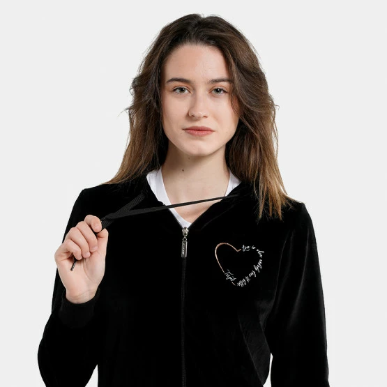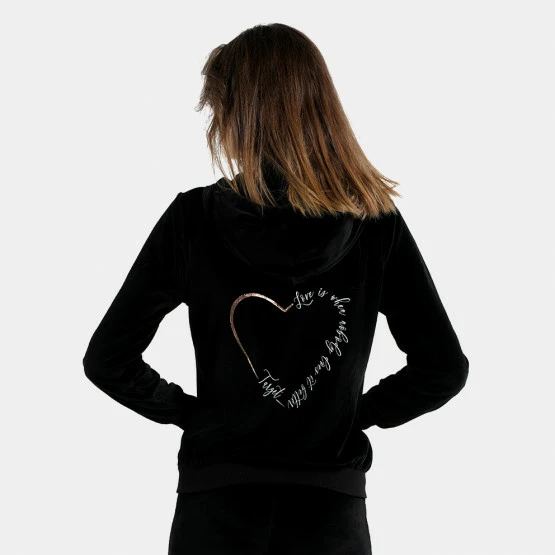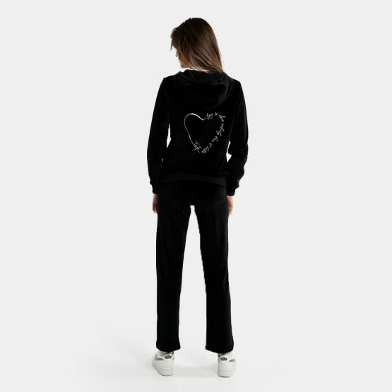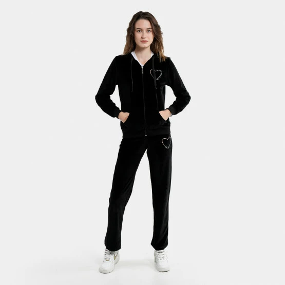 Κουπόνι 💯 Σετ Φόρμας Target Set With Hoodie Velour Γυναικείο Σετ Με Κουκούλα ΜΑΥΡΟ 👍