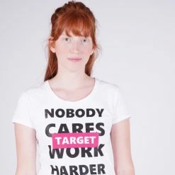 Συμφωνίες 👍 T-shirts | Μπλούζα κοντό μανίκι Target T 👕 Shirt K/M Καλτσα Φλαμα “Work Harder” Γυναικεία Μπλούζα ΛΕΥΚΟ 😉