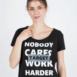 Καλύτερη πώληση ✔️ T-shirts | Μπλούζα κοντό μανίκι Target T 👚 Shirt Maκρυ Καλτσα Φλαμα “work Harder” ΜΑΥΡΟ 🥰